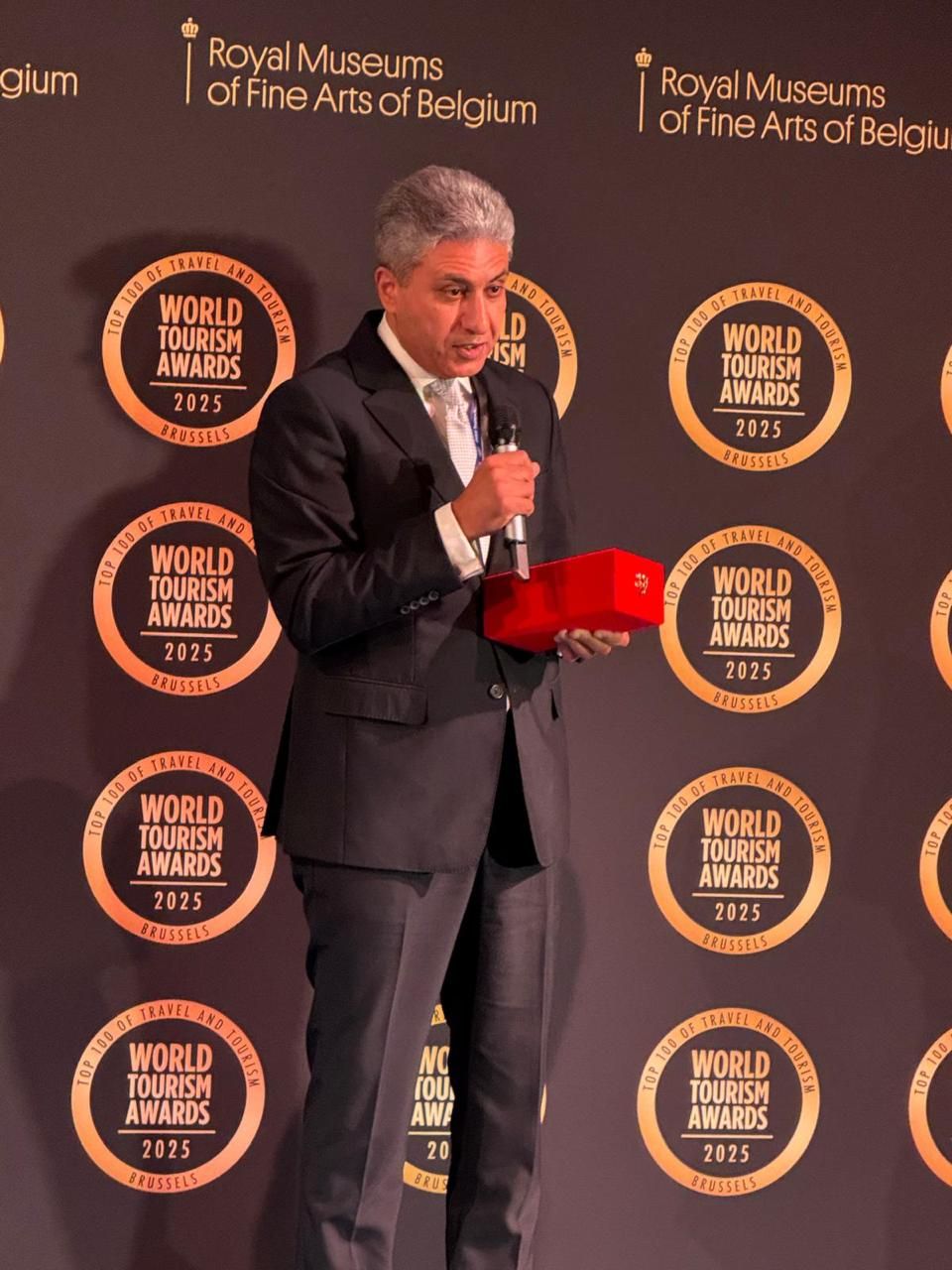وزير السياحة والآثار يتسلم جائزة أفضل وجهة تراثية بجوائز السياحة العالمية