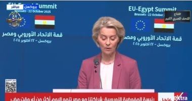 الأربعاء، 22 أكتوبر 2025 11:57 مقالت رئيسة المفوضية الأوروبية، أورسولا فون دير لاين، إن علاقات مصر والاتحاد الأوروبي، اليوم، تنمو أكثر من ذى قبل، وتتسع نطاقاتها، ووجودكم اليوم فى القمة المصرية الأوروبية، الأولى من نوعها حدث فريد، فمصر وأوروبا تتشاركان منافع تتعلق بأمن ورفاهية رعايانا.