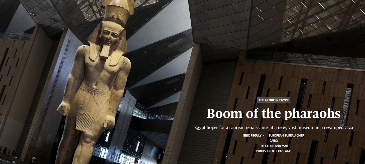 ألقت صحيفة "جلوب أند ميل" الكندية الضوء على تطوير منطقة أهرامات الجيزة مع اقتراب افتتاح المتحف المصرى الكبير، وقالت إن عملية التجديد الشاملة بقيمة 30 مليون دولار أمريكى والتي استمرت عقودا واشتملت على تطوير هضبة الجيزة بأكملها تمثل تغييرا كبيرا فى التجربة التي يمكن أن تقدمها المنطقة للزائرين من مختلف أنحاء العالم.