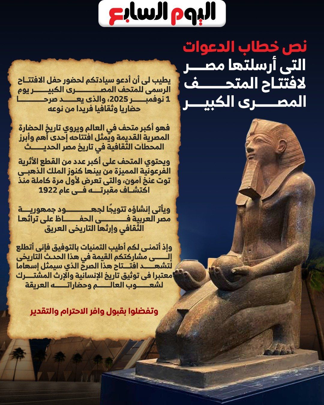 نص خطاب الدعوات التي أرسلتها لافتتاح المتحف المصري الكبير