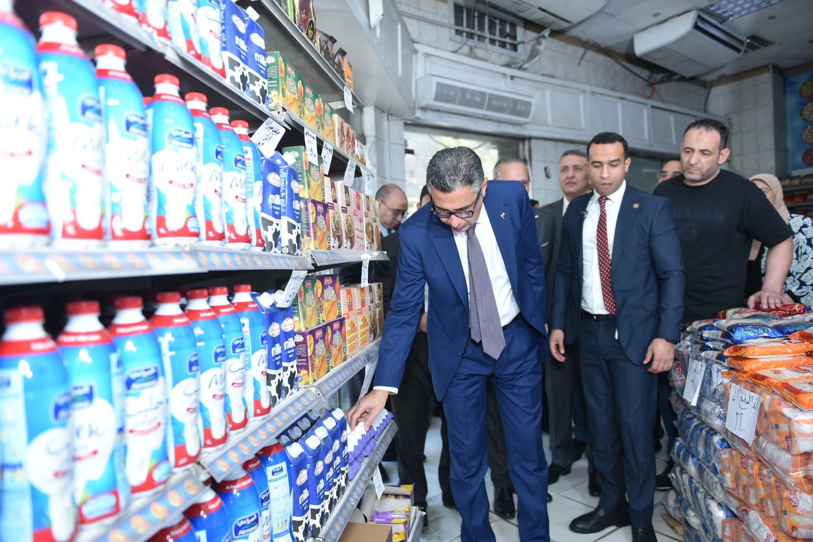 و رافق الوزير في الجولة اللواء وليد أبو المجد نائب الوزير، حسام الجراحي مساعد الوزير للرقابة، و أحمد كمال مساعد الوزير والمتحدث الرسمي للوزارة، و مصطفي الشاعر مدير مكتب الوزير، و عبدالباسط عبد النعيم مدير مديرية التموين بالقاهرة و شيماء عمر وكيل المديرية لشئون الرقابة والتجارة الداخلية والأستاذ محيي محمد وكيل المديرية لشئون التموين.