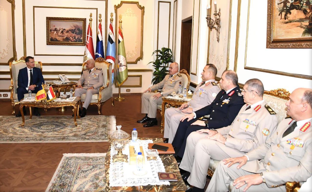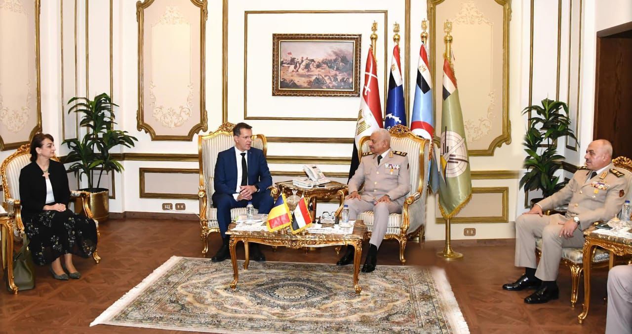 الأحد، 02 نوفمبر 2025 05:31 مإلتقى الفريق أول عبد المجيد صقر القائد العام للقوات المسلحة وزير الدفاع والإنتاج الحربى السيد ليفيو إيونوت موشتينو وزير الدفاع الرومانى والوفد المرافق له الذى يزور مصر حالياً، حيث أجريت له مراسم استقبال رسمية بمقر الأمانة العامة لوزارة الدفاع وعزفت الموسيقات العسكرية السلام الوطنى لكلا البلدين.