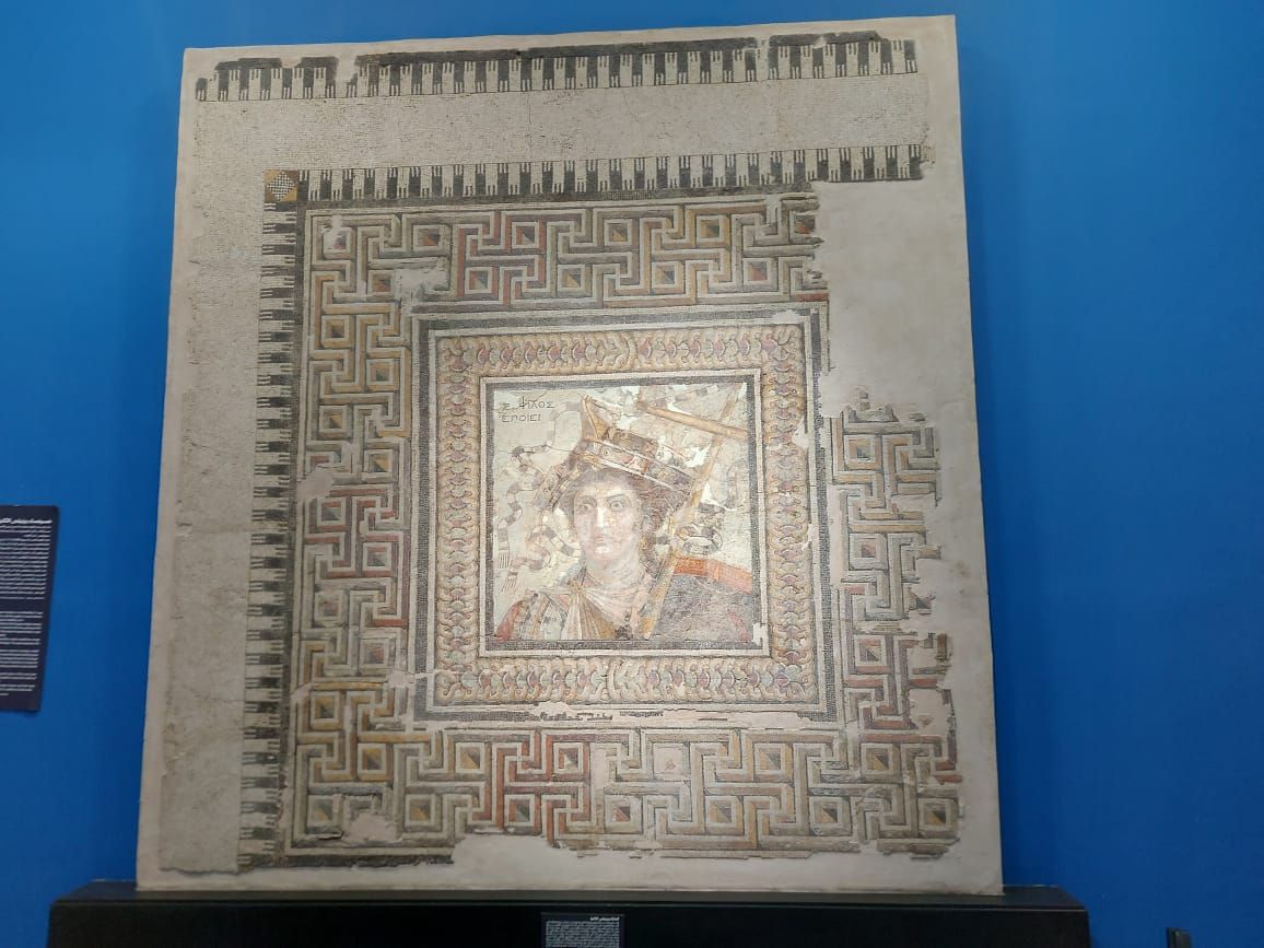 ولقد تم العثور عليها فى منطقة محطة الرمل، واستغرق نقلها شهورا، حيث قام فريق الترميم بمجهود كبير لتجميع اللوحة الأثرية، وتم تجميعها قطعة قطعة، وعمل قاعدة للصورة، وتبرز اللوحة فن الموزييك بالألوان الطبيعية، وهو أمر يحتاج إلى مجهود وفن عالٍ باستخدام الألوان الطبيعية.