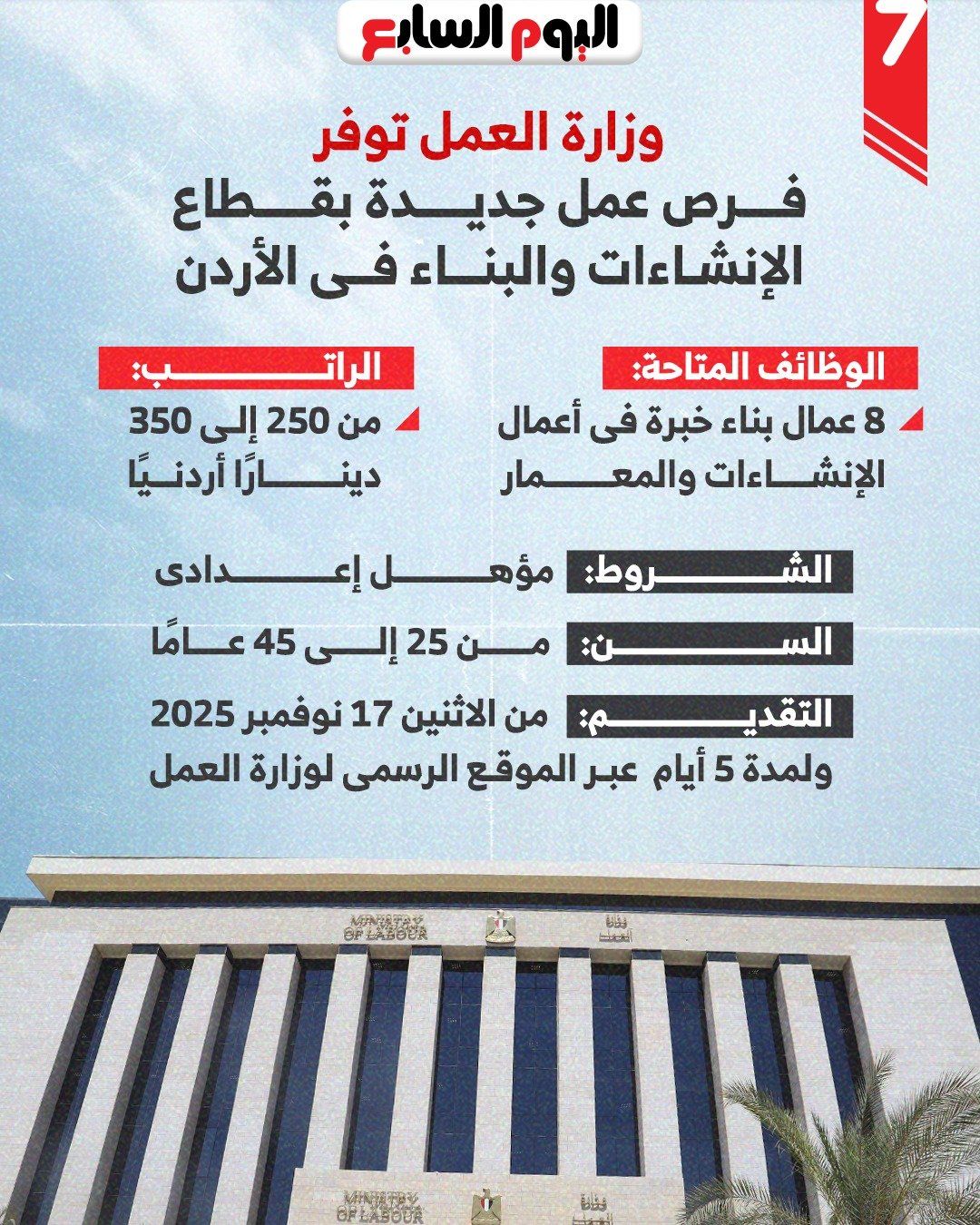 فرص عمل بقطاع الإنشاءات فى الأردن بمرتبات تصل لـ23 ألف جنيه.. إنفوجراف