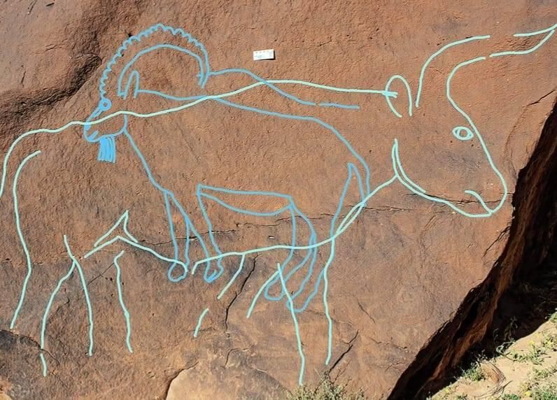 وثق الباحثون 62 لوحة صخرية تضم 176 نقشاً، بينها 130 نقشاً بالحجم الطبيعي لحيوانات الصحراء مثل الإبل، الوعول، الخيل البرية، الغزلان وثيران الأوروك.