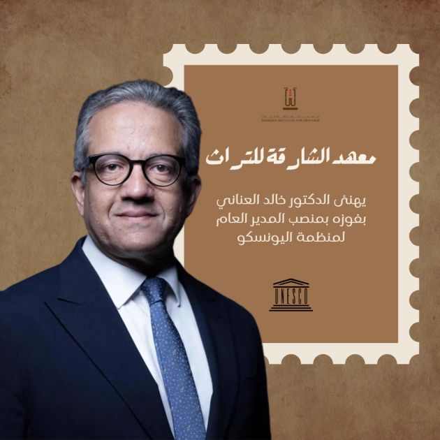 عبّر معهد الشارقة للتراث عن خالص تهانيه لمصر ود.خالد العناني، بمناسبة انتخابه مديراً عاماً لمنظمة الأمم المتحدة للتربية والعلم والثقافة (اليونيسكو)، في إنجازٍ تاريخي يعكس ما تحظى به الكفاءات العربية من تقديرٍ عالمي، وما تمثّله مصر من عمقٍ حضاري وثقافي أصيل على الساحة الدولية.