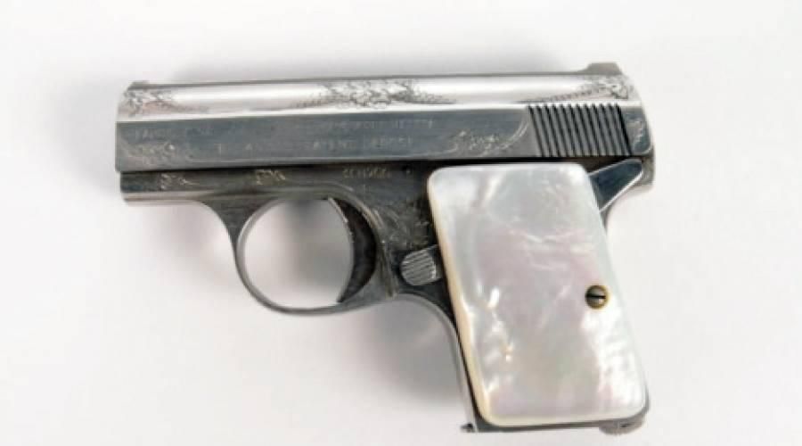 ويعد المسدس هو النسخة الأولي من مسدس آخر، صنع في بلجيكا أيضاً، وهو مسدس صغير من الفضة الخالصة وله مقبض مصنوع من الصدف وكانت تستخدمه الملكة فريدة كسلاح شخصي.