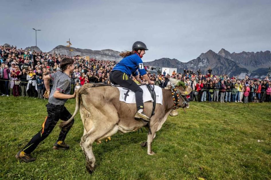 في بلدة تقع في قلب الجبال السويسرية اندفعت تسع بقرات وفارساتها من خط انطلاق رسم بالتبن، مع الفوز بلقب سباق «جائزة البقرة الكبرى».