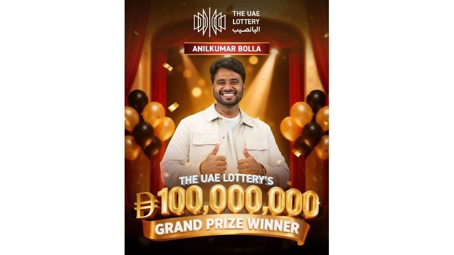 أعلن اليانصيب عن أول فائز بالجائزة الكبرى البالغة 100,000,000 درهم، في إنجاز غير مسبوق يُعد محطة بارزة في قطاع الترفيه والألعاب التجارية في دولة الإمارات. وقد فاز الرابح أنيل كومار بولا، من الهند والبالغ من العمر 29 عاماً، بالجائزة الكبرى في سحب Lucky Day الثالث والعشرين رقم #251018 الذي أُقيم يوم السبت، 18 أكتوبر 2025، ليصبح مليونيراً ويخلّد اسمه في تاريخ اليانصيب.