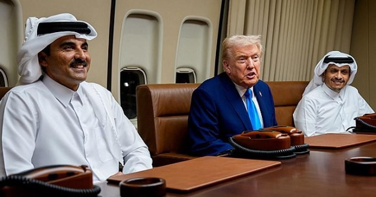 وصعد أمير قطر تميم بن حمد آل ثاني ورئيس الوزراء ووزير الخارجية محمد بن عبد الرحمن آل ثاني إلى الطائرة "إير فورس وان"، إثر هبوطها في قاعدة العُديد الجوية التي تضم المقر العام الإقليمي للجيش الأميركي وآلافا من الجنود الأميركيين.