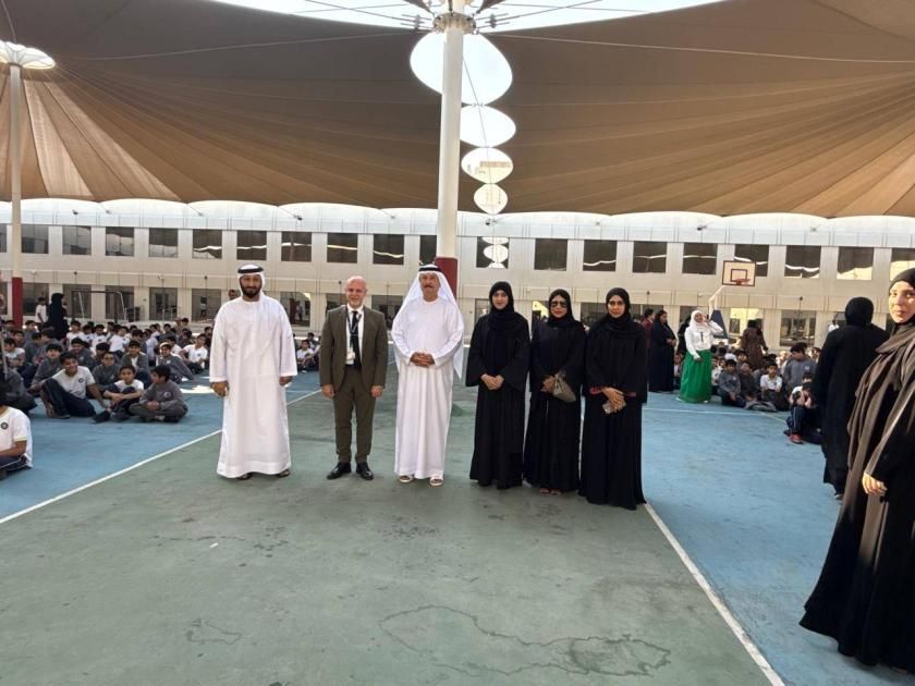 احتفلت مدرسة صير بني ياس، بيوم العلم، في أجواء وطنية مفعمة بالفخر والانتماء، بحضور عبدالله المعينة، مصمم علم الإمارات، الذي ألقى كلمة أمام طلبة المدرسة، مشجعاً إياهم على الابتكار والتفكير الإبداعي، ومؤكداً أهمية العلم كرمز للوحدة والهوية الوطنية.