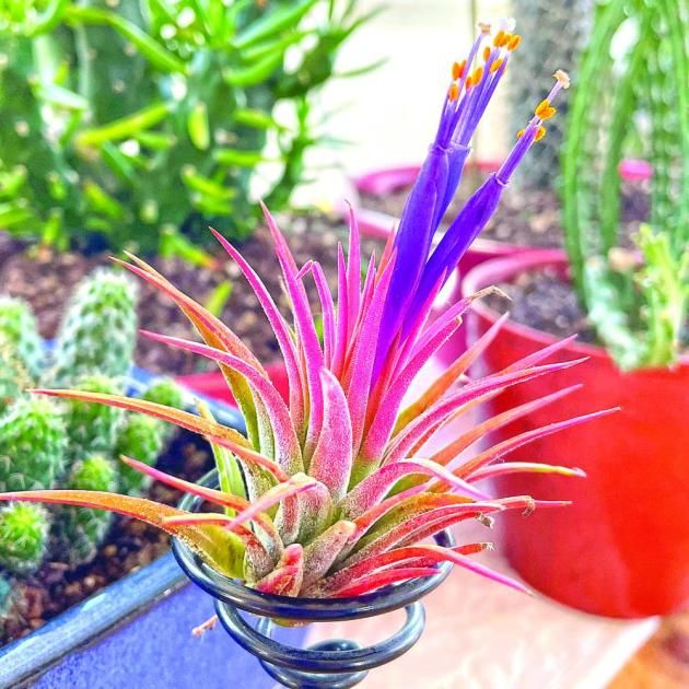 * تييلاندسيا إيونانثا: تُعرف بلونها الأخضر الذي يتحوّل إلى الأحمر الزاهي عند الإزهار، وهي صغيرة الحجم وسهلة العناية.