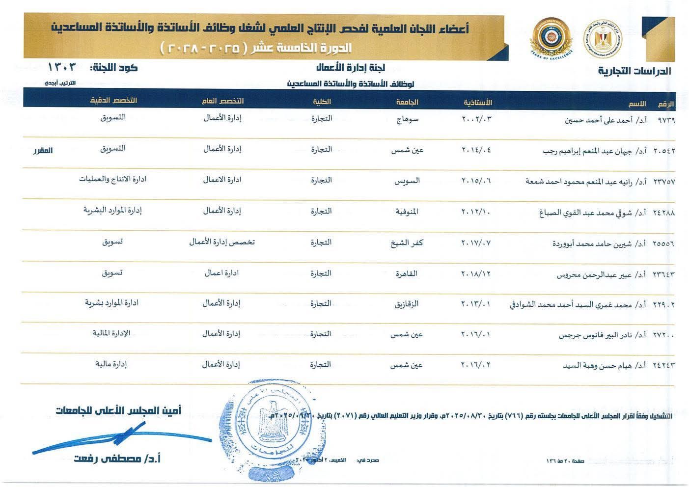 وتضمنت التشكيلات الجديدة أسماءً تظهر لأول مرة سواء على مستوى المقررين أو أعضاء اللجان العلمية، إلى جانب استمرار عدد من الأعضاء القدامى في بعض التخصصات والقطاعات الجامعية.