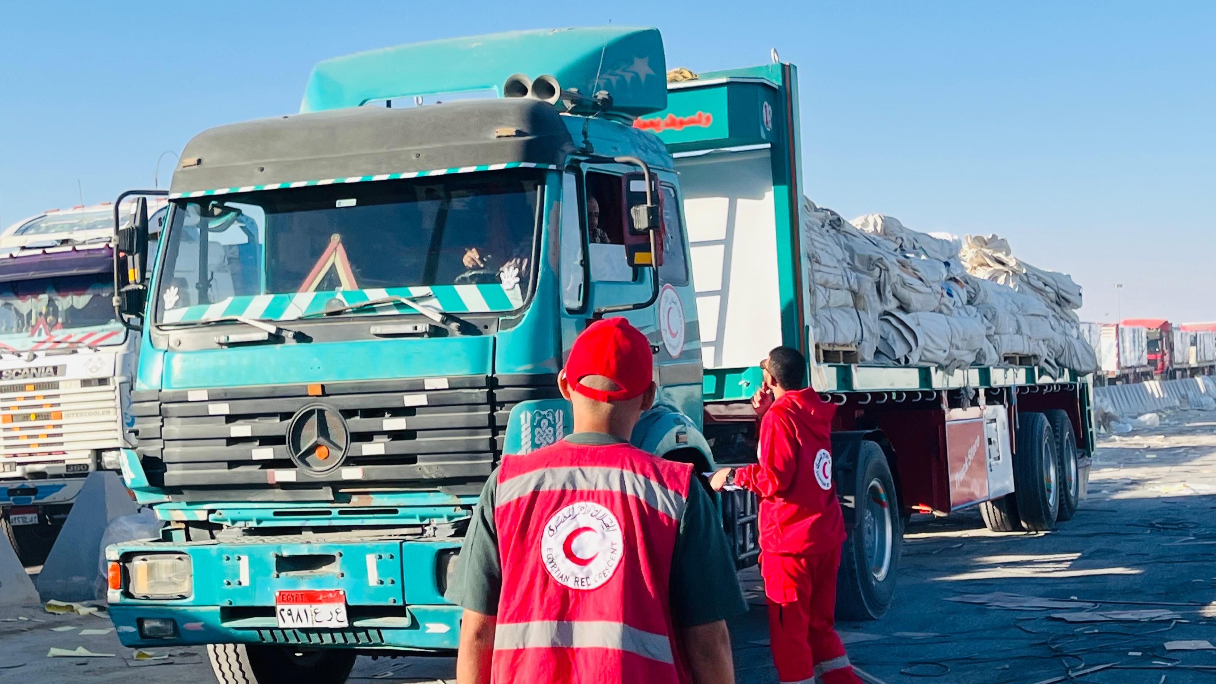 أطلق الهلال الأحمر المصري اليوم، قافلة « زاد العزة .. من مصر إلى غزة» الـ 46، والتي تحمل عدد من شاحنات المساعدات الإنسانية العاجلة في اتجاه قطاع غزة، وذلك في إطار جهوده المتواصلة كآلية وطنية لتنسيق المساعدات إلى غزة وتتضمن اكثر من 150 ألف سلة غذائية، وأطنان من: الدقيق، السولار، والمستلزمات الطبية والإغاثية الضرورية التي يحتاجها القطاع، إضافة إلى 5 سيارات إسعاف و 11 سيارة صهاريج مياه، ويأتي ذلك في إطار الجهود المصرية لتقديم الدعم الغذائي والإغاثي لأهالي غزة.