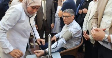محافظ الجيزة يخضع للفحص الطبى مع الأهالى فى قافلة طبية بالواحات.. صور