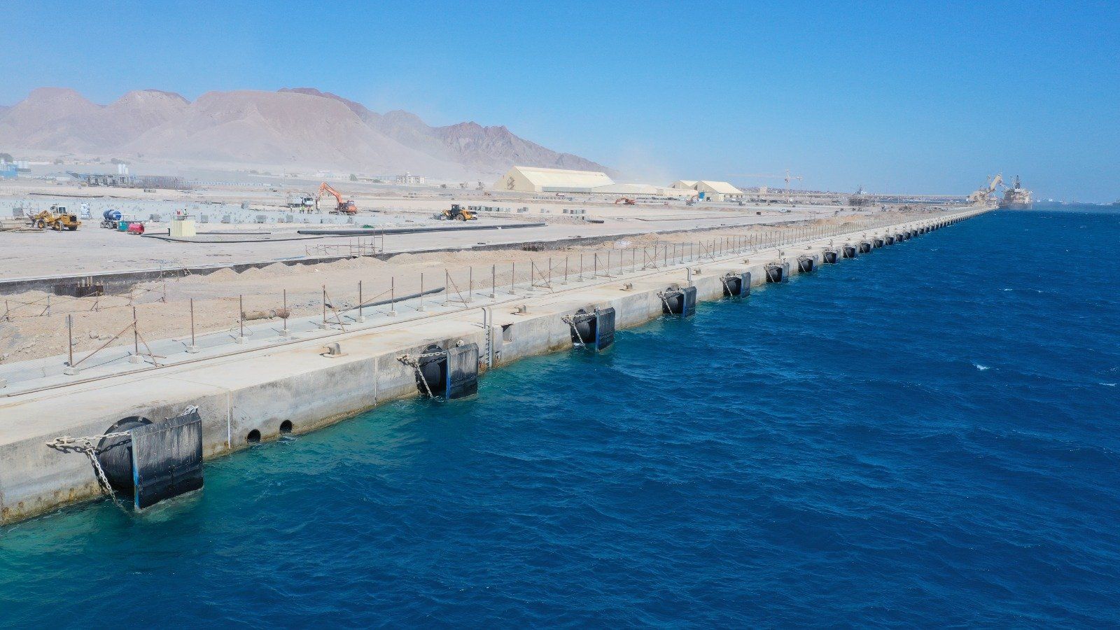 ويتم تنفيذ المشروع على مساحة 776 ألف م٢ تقريباً، مع رصيف بطول 1100 متر، وعمق 17 متراً، وتم الانتهاء من من أعمال البنية التحتية بنسبة 100%، التي نفذتها شركات وطنية مصرية متخصصة، كما تم بدء أعمال البنية الفوقية للمحطة.