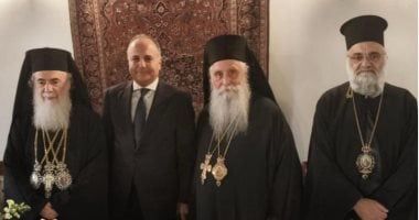 شارك السفير المصري في رام الله إيهاب سليمان في الاحتفالية الكبرى بكنيسة القيامة بالقدس التي ترأسها صاحب الغبطة بطريرك كنيسة الروم الأرثوذكس في القدس ثيوفيلوس الثالث، لسيامة الأرشمندريت سيميون كـمطران لسيناء وفران ورائثو (رئيس دير القديسة كاترين في جبل سيناء).