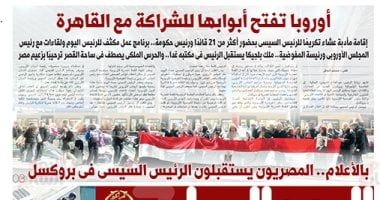 واقرأ أيضًا فى العدد الصادر غدًا:بالأعلام.. المصريون يستقبلون الرئيس السيسى فى بروكسل.. قيادات ورموز الجاليات يتغلبون على بعد المسافات لتوجيه رسالة دعم وتأييد للقيادة السياسية.. ويؤكدون: الزيارة تأكيد لمكانة مصر الدولية
