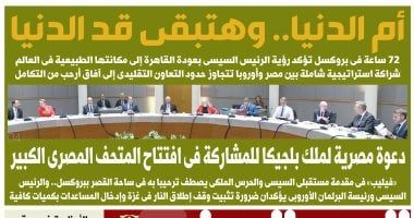 واقرأ أيضا على صفحات اليوم السابع غدا..ـ أم الدنيا.. وهتبقى قد الدنيا.. 72 ساعة فى بروكسل تؤكد رؤية الرئيس السيسى بعودة القاهرة إلى مكانتها الطبيعية فى العالم.. شراكة استراتيجية شاملة بين مصر وأوروبا تتجاوز حدود التعاون التقليدى إلى آفاق أرحب من التكامل