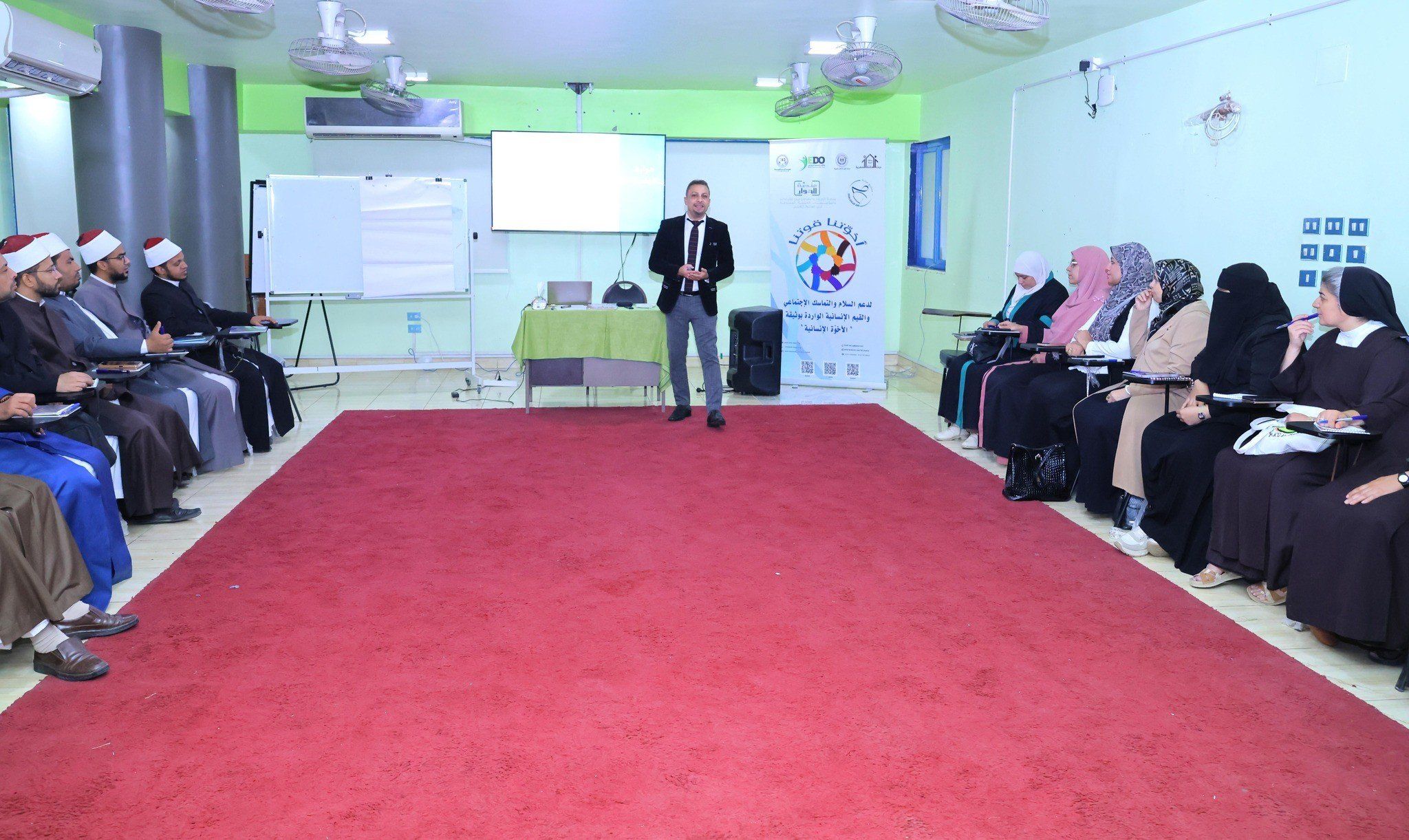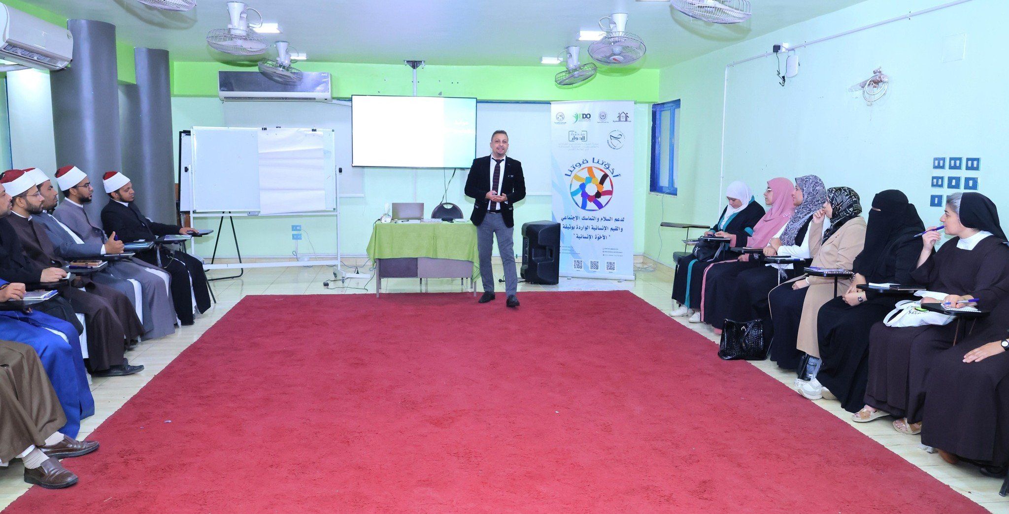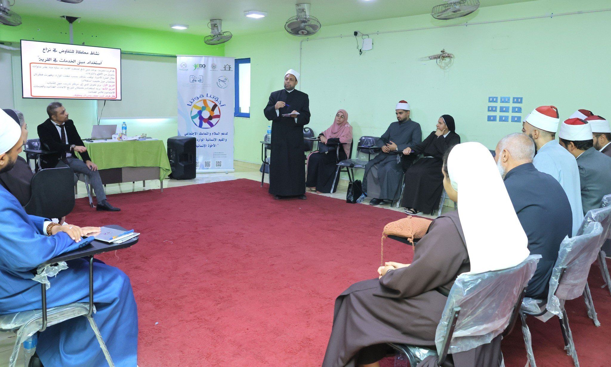 بدأت الورش التدريبية التي تأتي في إطار مبادرة"أخوتنا قوتنا" بموضوعات المواطنة الحاضنة للتنوع وتحدياتها وقيمها وآليات تطبيقها، والفرق بين التنوع والتعددية، إلى جانب المسؤولية الاجتماعية الدينية، ووثيقة الإخوة الإنسانية، التي تجمع أبناء المجتمع على قيم مشتركة رغم اختلاف المعتقدات والخلفيات، كمداخل لفهم النزاعات المبنية على الهوية.