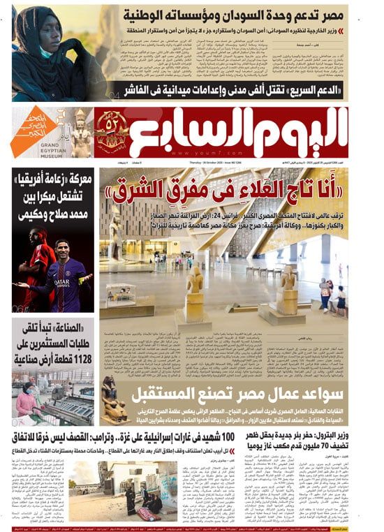 تنشر "اليوم السابع" فى عددها المطبوع الصادر غدا الخميس، «أَنا تاج العلِاء ِ فى مفرِق الشرق».. ترقب عالمى لافتتاح المتحف المصرى الكبير.. فرانس 24: أرض الفراعنة تبهر الصغار والكبار بكنوزها.. ووكالة أفريقية: صرح يعزز مكانة مصر كعاصمة تاريخية للتراث.
