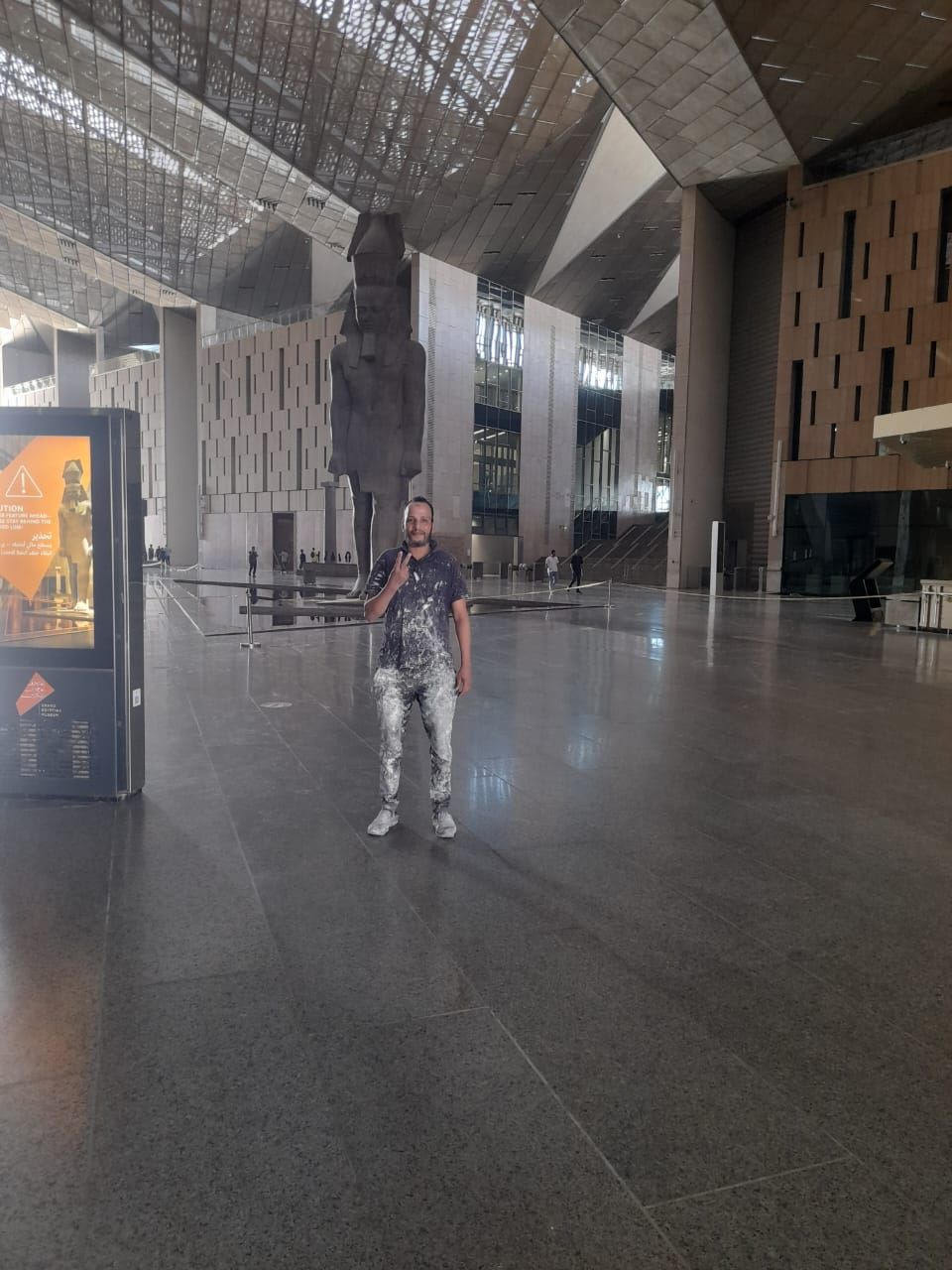 وأوضح أنه تولى أعمال الدهانات في قاعات العرض بالمتحف أمام البوابة الرئيسية، مؤكدًا أن كل فرد في الفريق كان يؤدي عمله بحب وإخلاص، بهدف أن يظهر المتحف في أبهى صورة ممكنة.