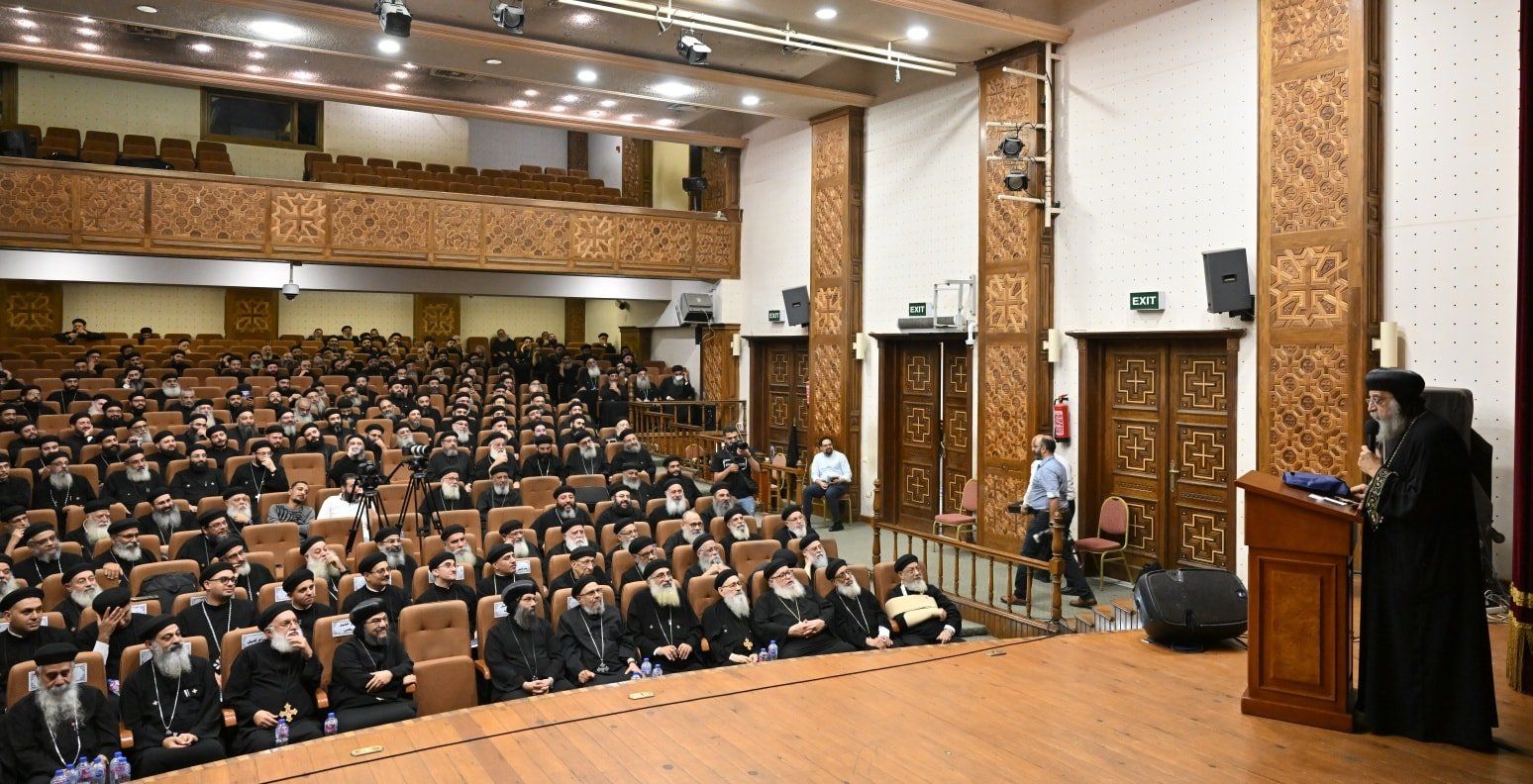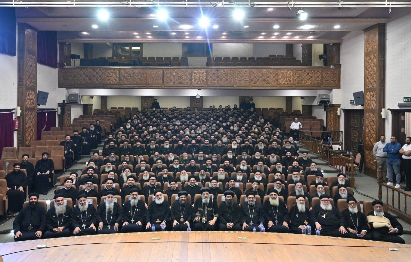 الثلاثاء، 04 نوفمبر 2025 11:36 مالتقى قداسة البابا تواضروس الثاني بالمسرح الملحق بالمقر البابوي بالإسكندرية مجمع آباء كهنة الإسكندرية بحضور الأبوين الأسقفين العموم اللذين يخدمان بالاسكندرية الأنبا باڤلى (قطاع المنتزه) والأنبا هرمينا (قطاع شرق الإسكندرية) والقمص أبرآم إميل وكيل عام البطريركية بالإسكندرية، حيث قدموا التهنئة بالعيد الـ 13 لجلوس قداسته على كرسي مار مرقس الرسول.