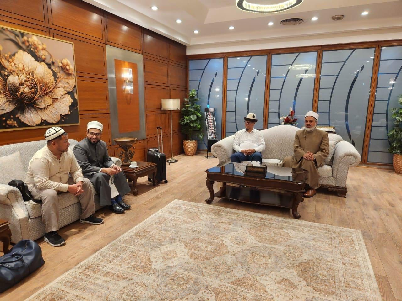 واستقبل مفتي قيرغيزستان الشيخ ضمير راكاييف في مكتبه الدكتور أسامة الأزهري، في جلسة علمية يحضرها نائب المفتى الأول الشيخ سميع الله، والنائب الثاني للمفتي الشيخ حسن سيرغابايف، وعدد من أعضاء المجلس العلمي القرغيزي، على رأسهم فضيلة الشيخ جوروباي تشيرغازي الأزهري أحد نواب المفتي أيضًا.