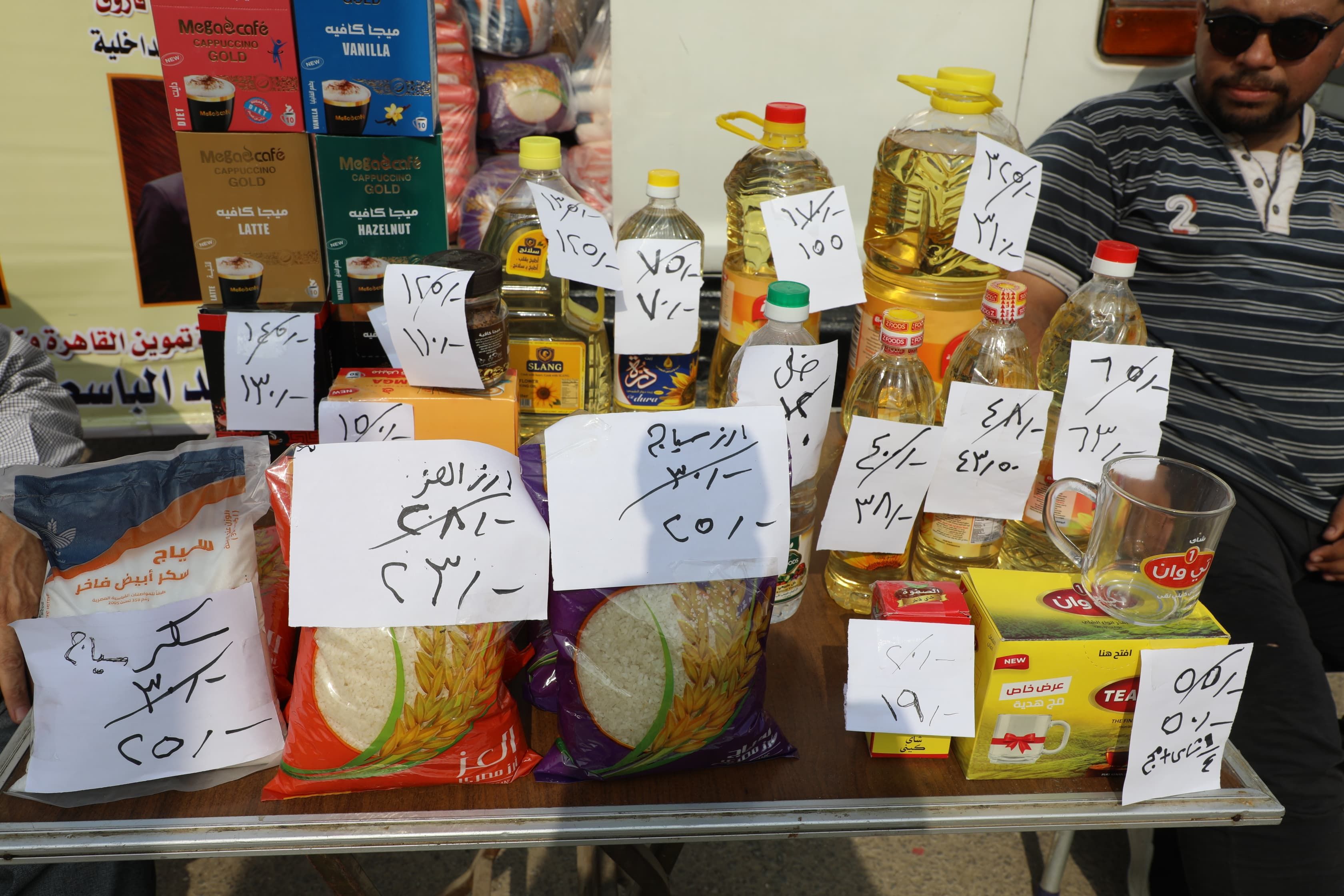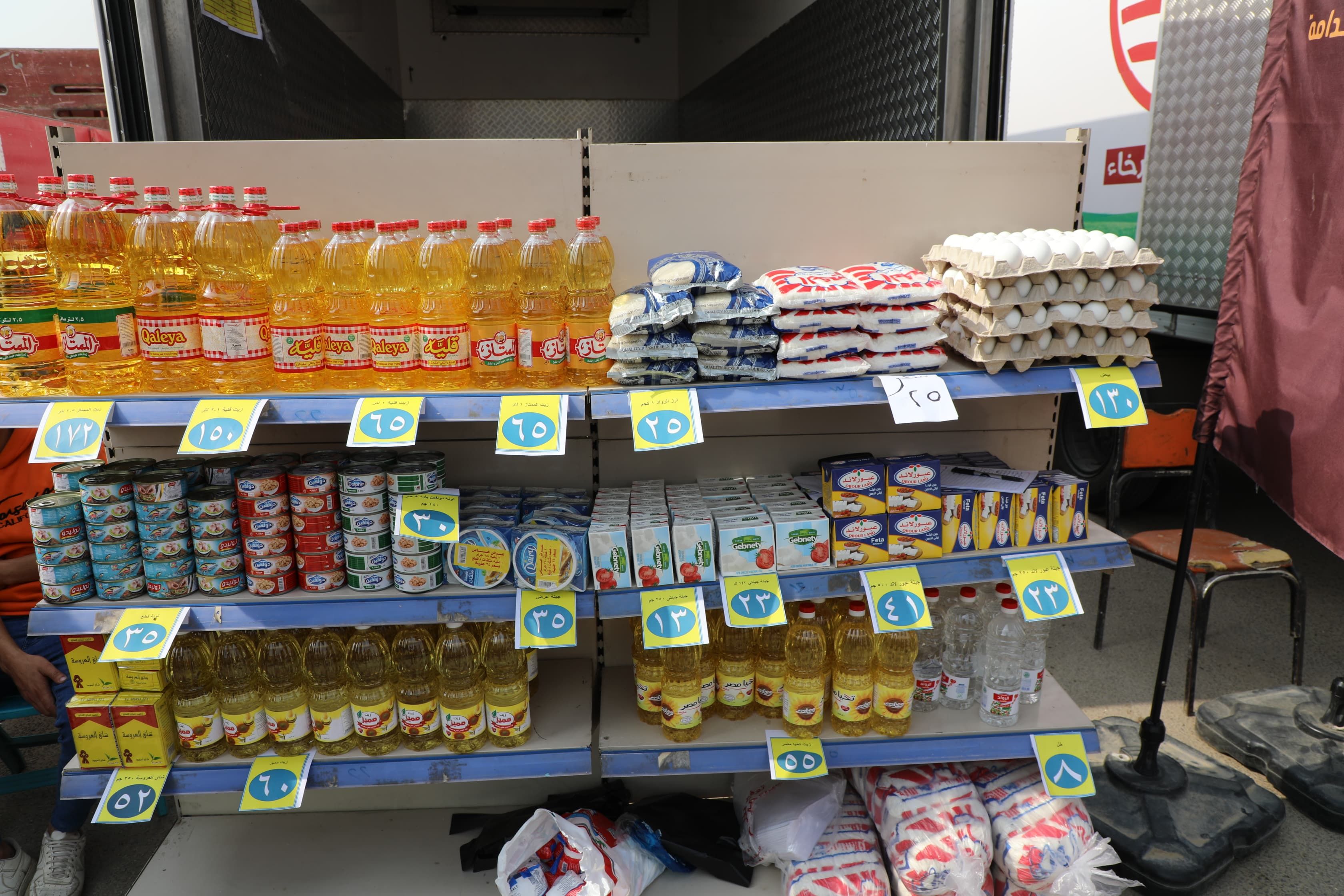 وتضم القافلة 30 سيارة، لبيع كافة السلع الأساسية كالزيت والسكر والأرز والمسلى والمكرونة ، والمنظفات والصابون، إلى جانب الدواجن، واللحوم، والألبان والجبن، والخضار والفاكهة، والعصائر ، والعسل، والبقوليات ، والبيض .