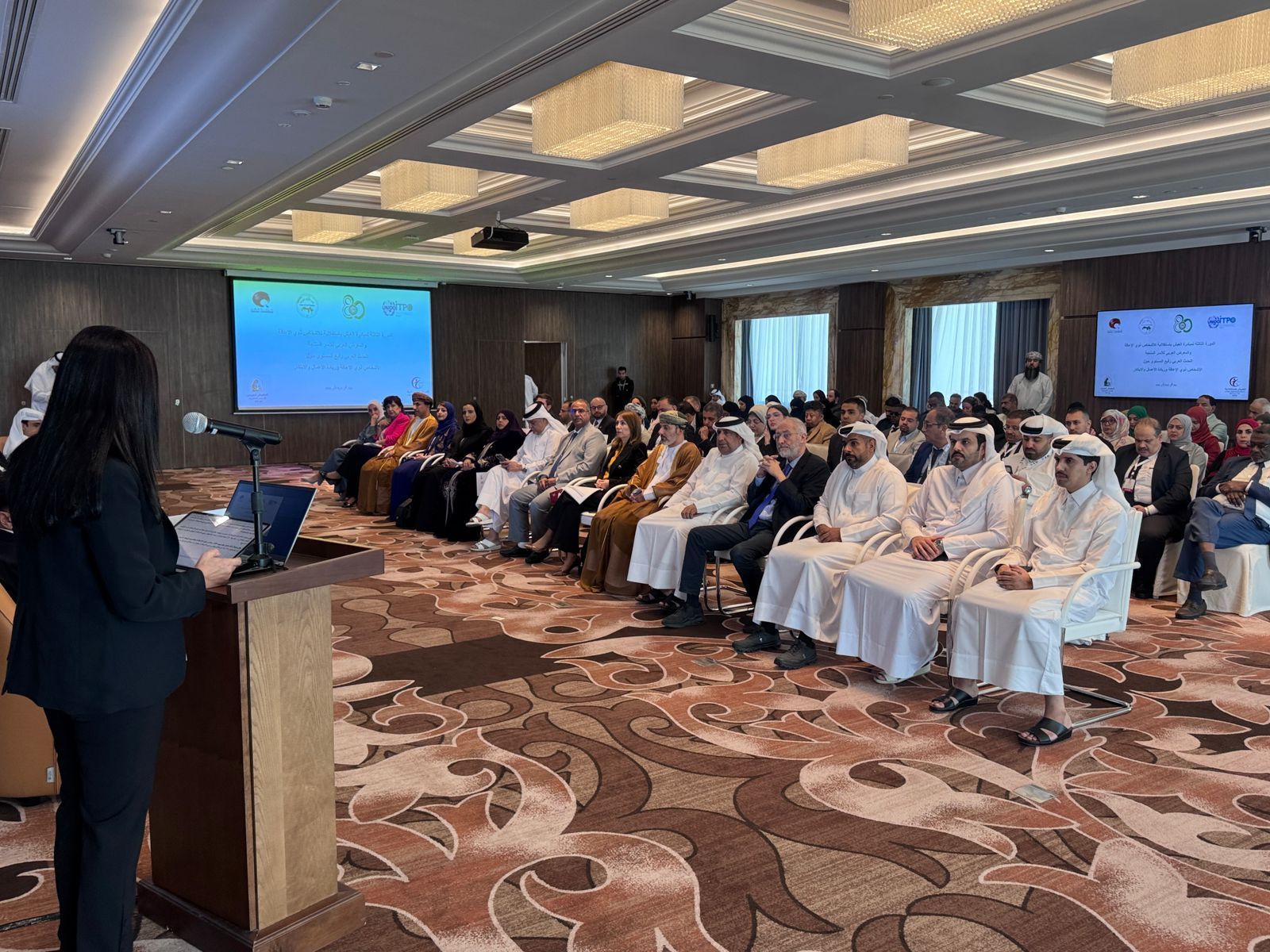 وشهد الافتتاح حضور السيد محمد بن طوار الكواري النائب الأول لرئيس مجلس إدارة غرفة تجارة وصناعة قطر، و محمد بن صالح العلوي التنمية الاجتماعية بمملكة البحرين رئيس الدورة الـ44 لمجلس وزراء الشؤون الاجتماعية العرب، والدكتور خالد حنفي الأمين العام لاتحاد الغرف العربية، والسفير حسام زكي الأمين العام المساعد رئيس مكتب الأمين العام لجامعة الدول العربية، و وفاء بني مصطفي وزيرة التنمية الاجتماعية بالمملكة الأردنية الهاشمية، و محمد حسن العبيدلي المدير العام للمكتب التنفيذي لمجلس وزراء العمل والشؤون الاجتماعية بدول الخليج، والوزير المفوض طارق النابلسي مدير إدارة التنمية والسياسات الاجتماعية بجامعة الدول العربية.