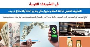 فى التشريعات العربية.. التكييف القانونى لواقعة استلام تحويل مالى بطريق الخطأ والامتناع عن رده.. "فراغ تشريعى" فى العديد من الدول العربية.. والإمارات والأردن والسودان تصدت للجريمة بسن تشريعات صريحة ومباشرة
