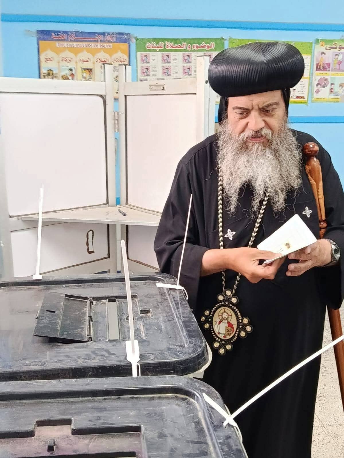شارك نيافة الحبر الجليل الأنبا بضابا أسقف نجع حمادي وتوابعها، في الانتخابات، حيث أدلى بصوته اليوم مؤكدًا على أهمية المشاركة الإيجابية في هذا الاستحقاق الوطني.