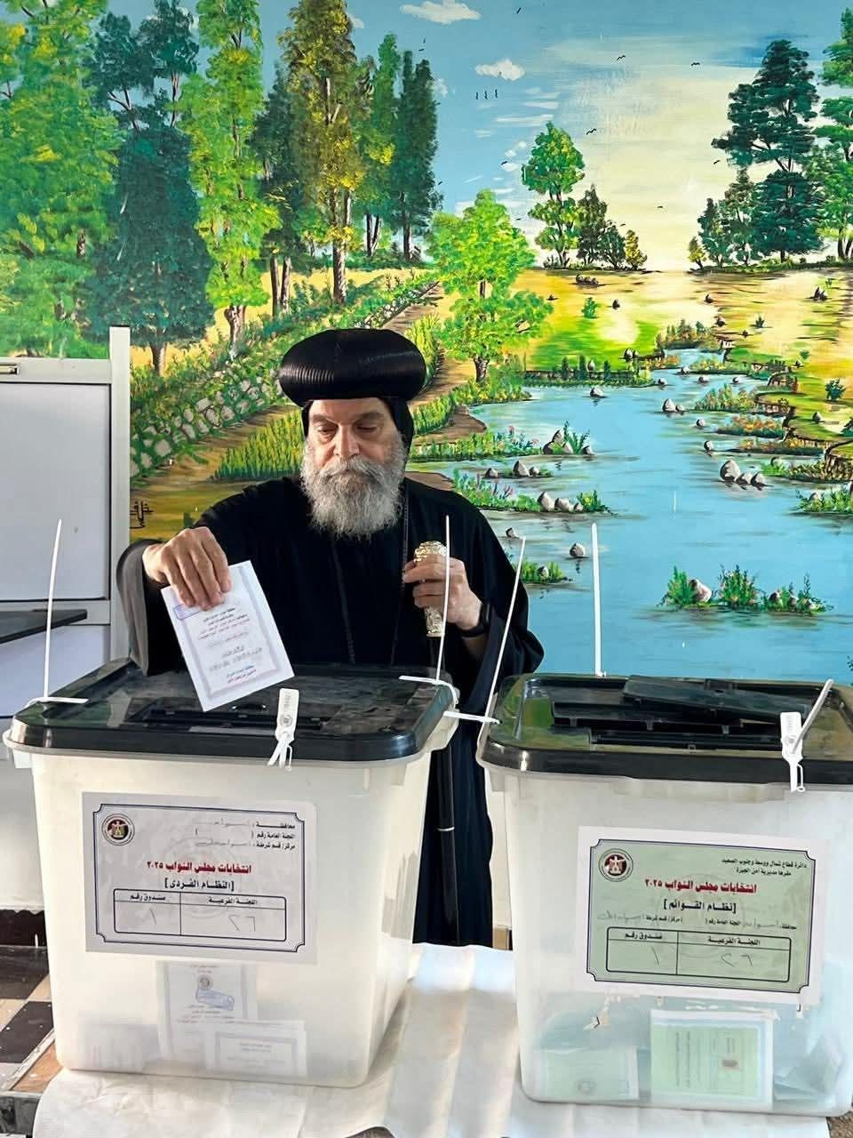الأنبا يوأنس يُدلي بصوته في انتخابات مجلس النواب