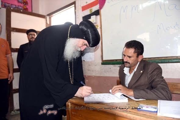 كما أدلى نيافة الحبر الجليل الأنبا غبريال أسقف بني سويف، صباح اليوم بصوته الانتخابي في الانتخابات، وذلك بمقر لجنته الانتخابية بمدرسة القومية الخاصة ببني سويف.
