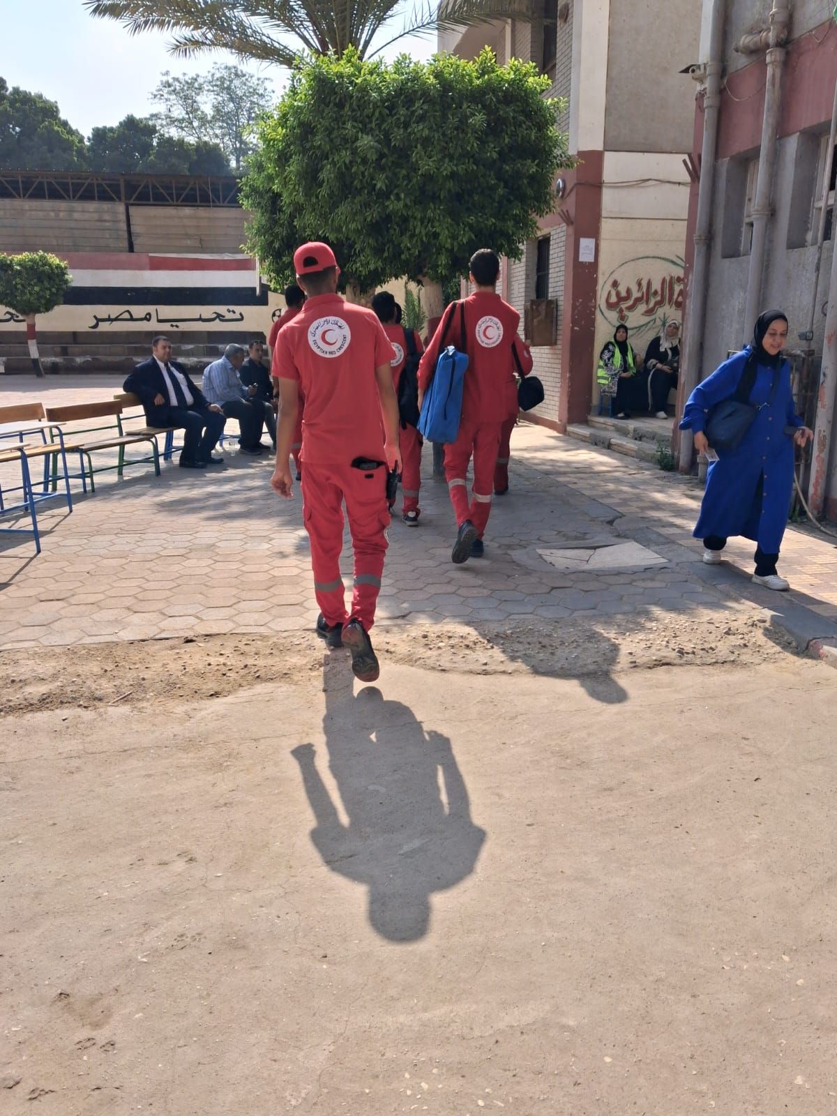 تواجد فرق الهلال الأحمر المصري في لجنة مدرسة بدر الإعدادية بالدقي