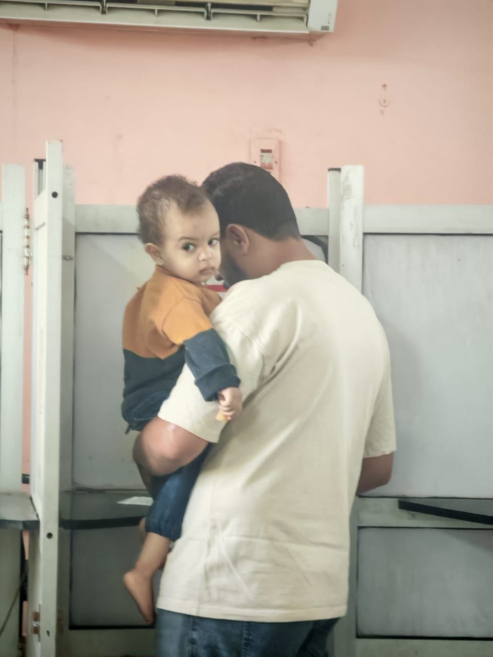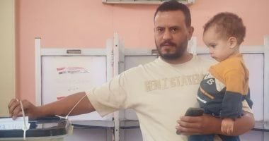ناخب وطفله خلال الإدلاء بصوته