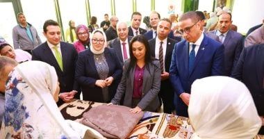 وزيرة التضامن الاجتماعي ومحافظ الفيوم يتفقدان معرض كنزي للحرف اليدوية