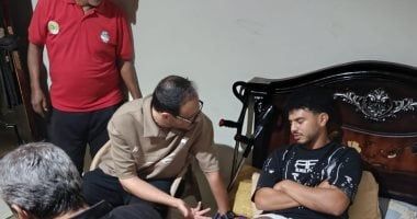 رئيس نادى بلدية المحلة يطمئن على لاعب الفريق بمنزله بكفر الشيخ
