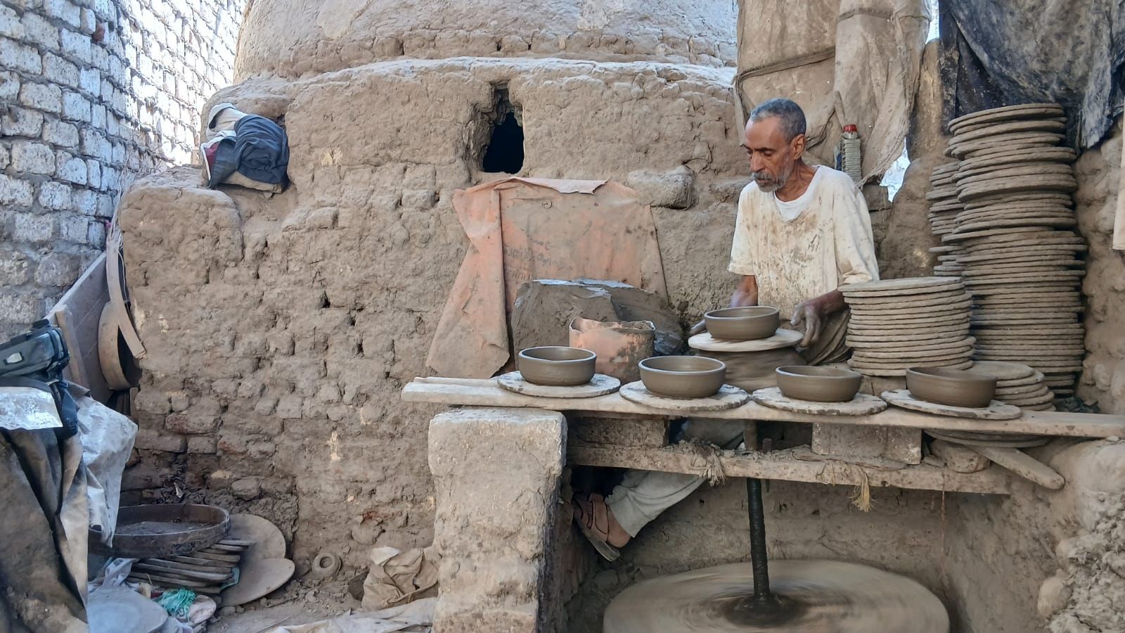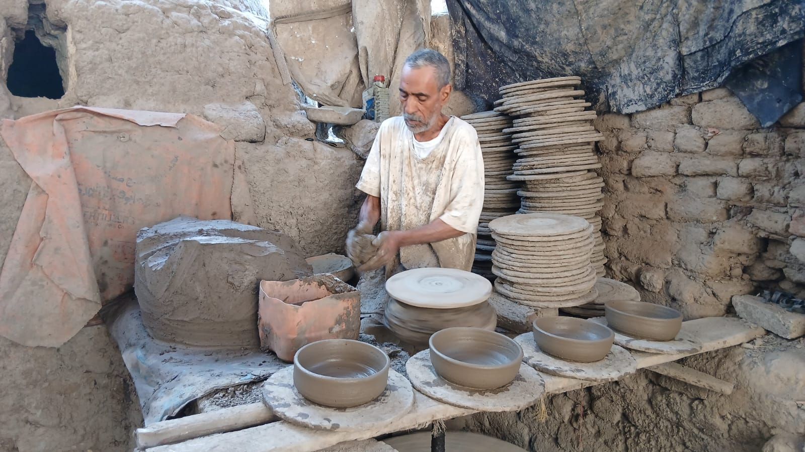 هنا لا صوت يعلو فوق صوت الحرفة، لم يهتز العم محمد أمام تغيرات الزمن والحداثة، بل ظل وفيا لمهنته التي ورثها عن الأجداد، ليصبح شاهدًا على صناعة تراثية تجسد الحكاية بين صوت حركة الدولاب وملمس الطين الخارج من أرض البلاد، في لوحة تجمع بين الإبداع والصبر، وصورة الماضي التي لا تزال حية في أيادي الحاضر.