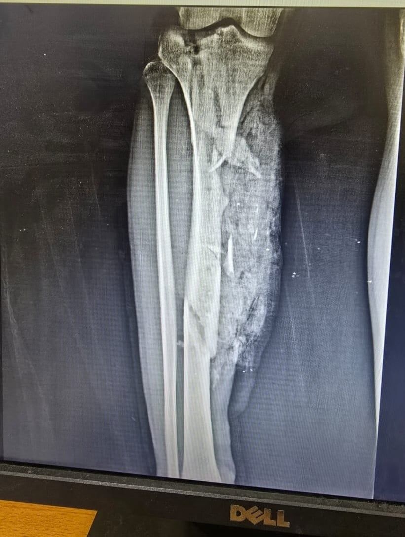 وتابعت المستشفى، أنه تم تجهيز المريض ولياقته من قسم التخدير وتحضيره وتجهيز الدم والبلازما اللازمة للحالة، حيث استقر التشخيص علي كسر متفتت مفتوح مع فقد جزء من العظام بالعضد الأيمن مع قطع بالعضلات، وكسر متفتت مفتوح مع فقد جزء من العظام بالساق الأيمن مع قطع بالعضلات، وتهتك بالقدم اليمنى وقطع بالأوتار والعضلات، مع كسر بعظام القدم.