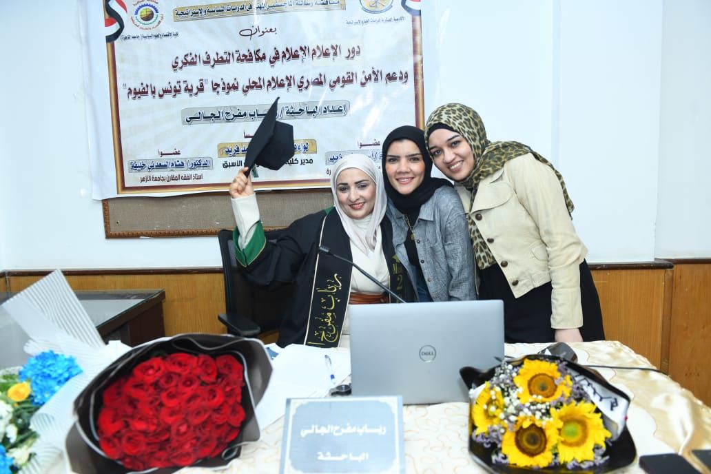 ناقشت الزميلة رباب الجالي - مدير مكتب جريدة اليوم السابع بمحافظة الفيوم - رسالة لنَيْل درجة الماجستير المهني من الأكاديمية العسكرية للدراسات العليا والاستراتيجية بعنوان: دور الإعلام فى مكافحة التطرف الفكري ودعم الأمن القومى - الإعلام المحلي نموذجا (قرية تونس بالفيوم)، وأشرف على الرسالة وترأس لجنة المناقشة اللواء الدكتور بهجت فريد مدير كلية الدفاع الوطني الأسبق، وتكونت لجنة المناقشة من الأستاذ الدكتور هشام السعدني خليفة، أستاذ الفقه المقارن بجامعة الأزهر، والأستاذة الدكتورة أسماء أبو زيد الأستاذ المساعد بكلية الإعلام بجامعة القاهرة.
