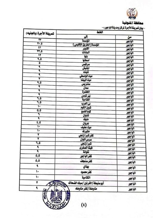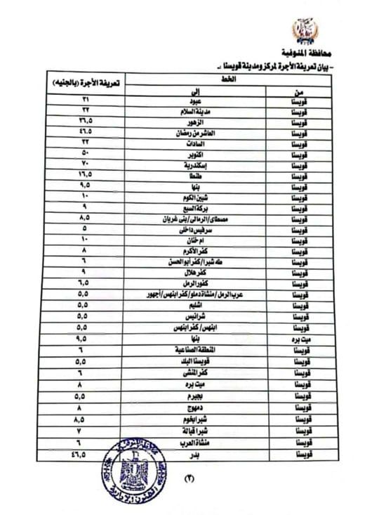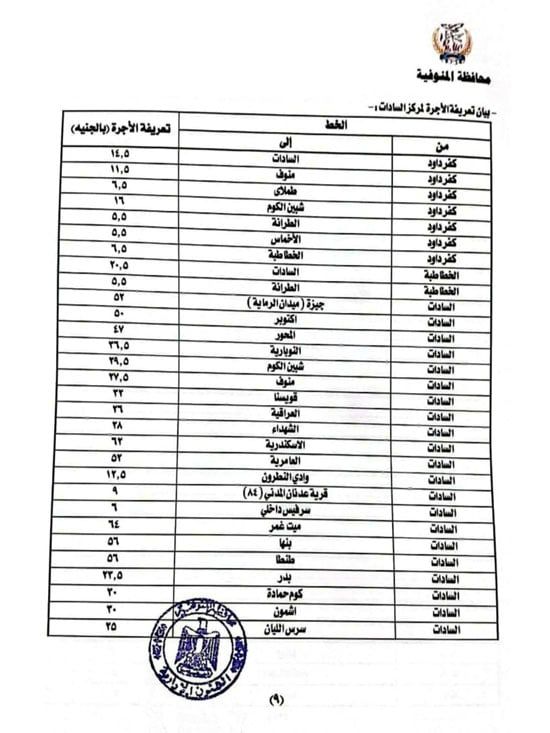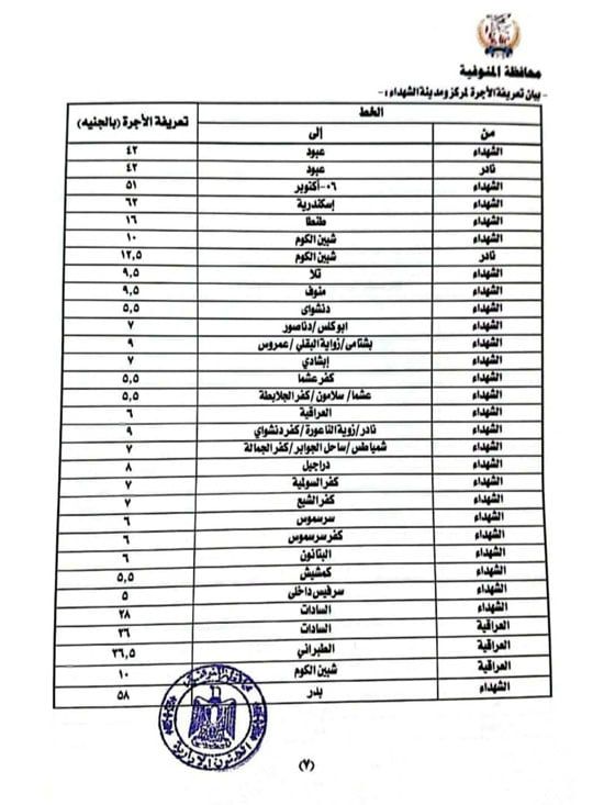 هذا وناشد محافظ المنوفية جموع المواطنين بعدم دفع أية زيادة عن التعريفة الرسمية المعلنة والإبلاغ الفوري عن أي سيارة تخالف التعليمات من خلال الاتصال بغرفة العمليات المركزية بمركز سيطرة الشبكة الوطنية للطوارئ والسلامة العامة بالديوان العام علي الأرقام التالية (2239804- 2224899 - 2222035 )، وغرف عمليات المرور ( 2316985- 2317017) ، ومديرية التموين( 2174039-2174037) ، والخط الساخن ١١٤