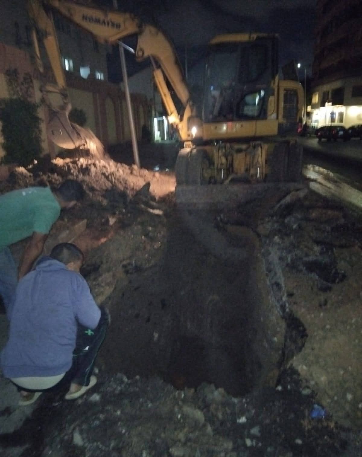 اصلاح كسر 2 ماسورة مياه أمام النادي الاوليمبي