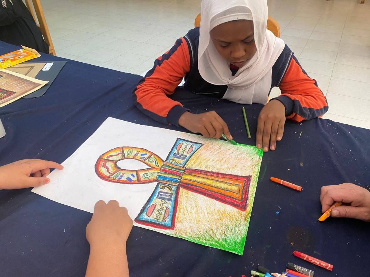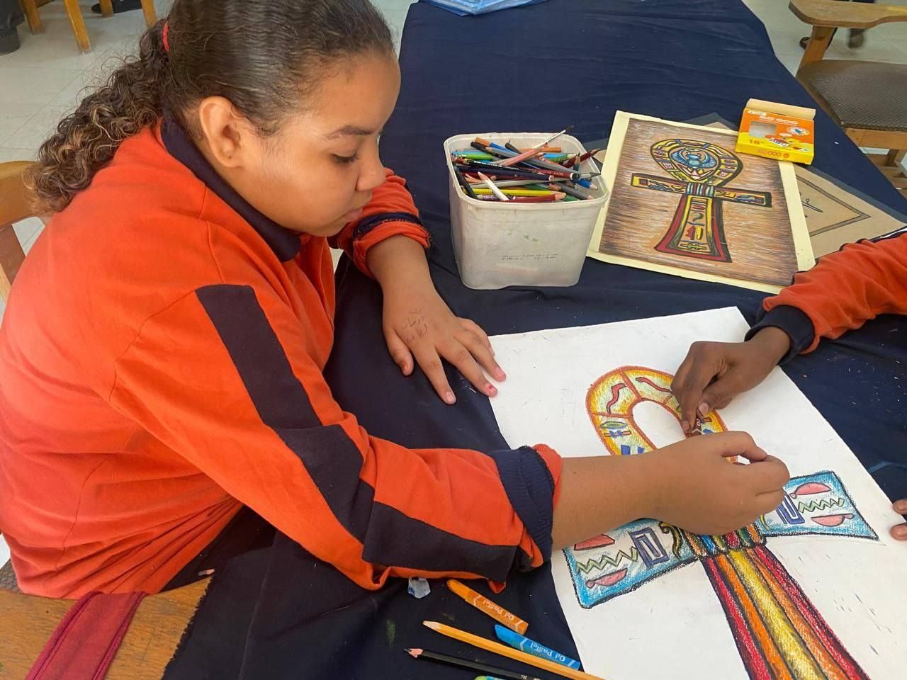 رسم مفتاح الحياة فى الورش للفنون التشكيلية لدعم الأطفال