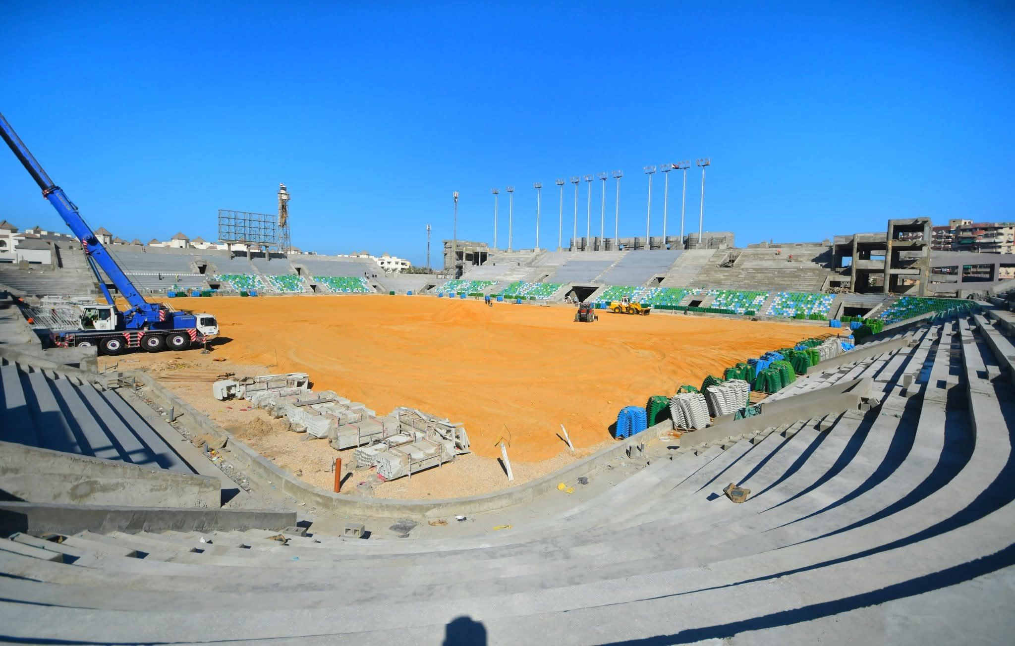 بالتوازي مع ذلك، تتواصل أعمال تأسيس تربة زراعة النجيل الطبيعي بالملعب الرئيسي، تمهيدًا لبدء عملية فرش النجيل خلال الفترة المقبلة.