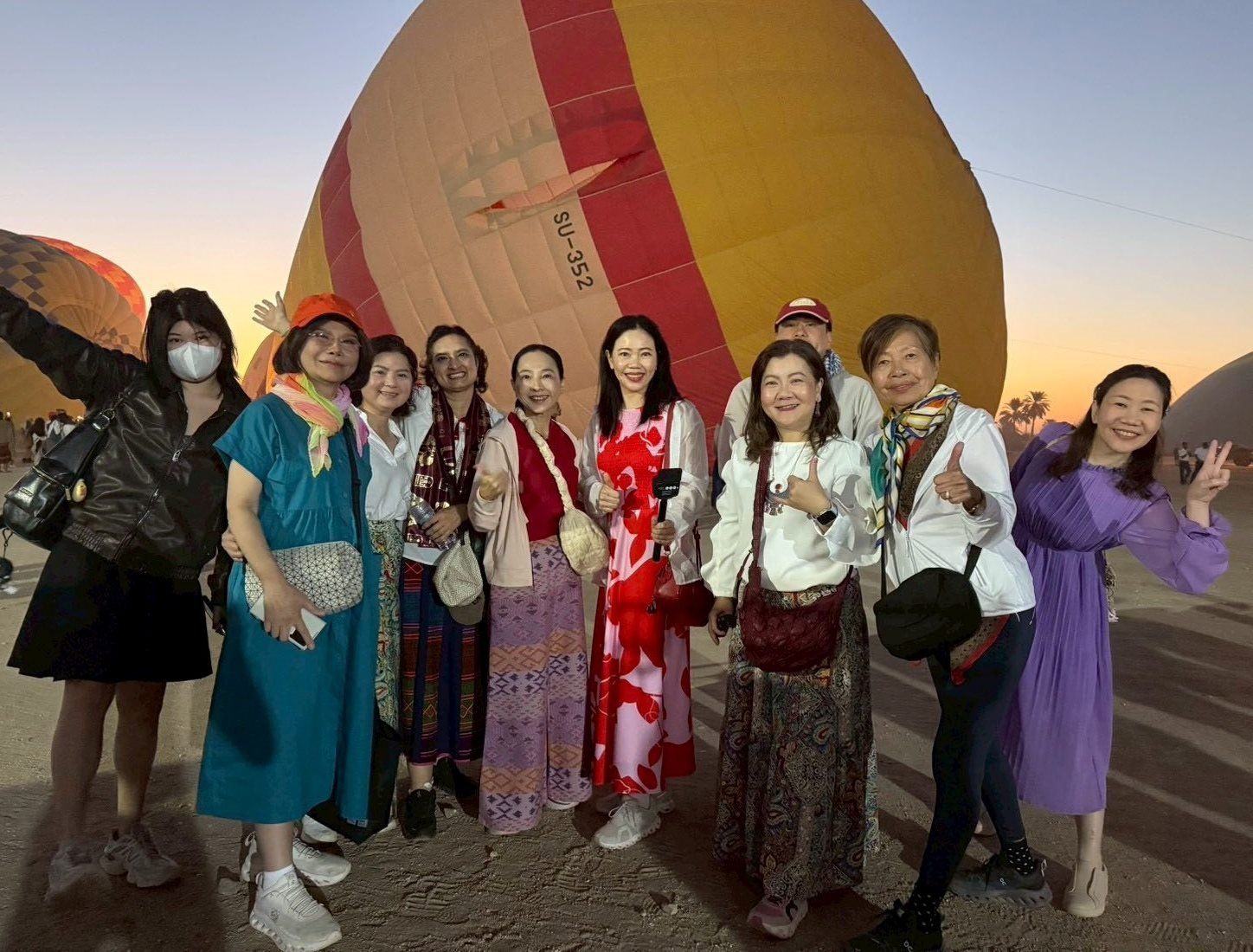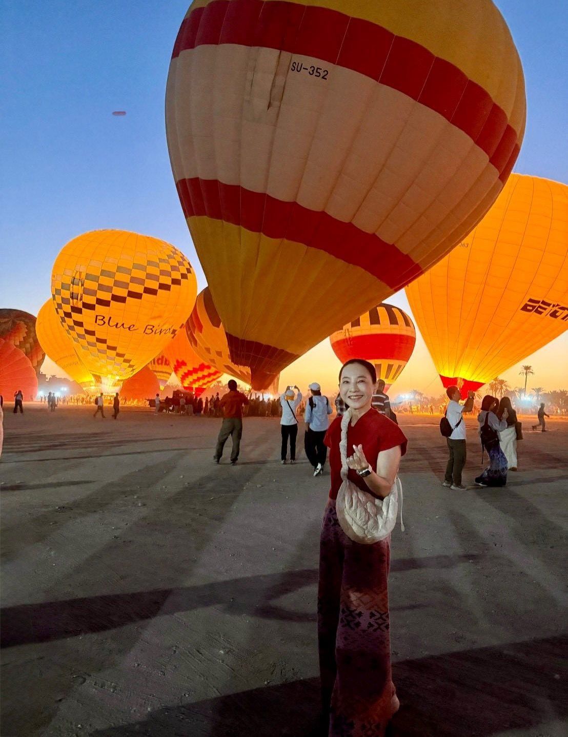 سعادة أجنبية قبل التحليق فى رحلات البالون الطائر