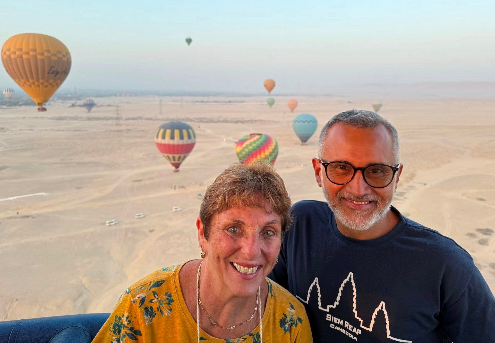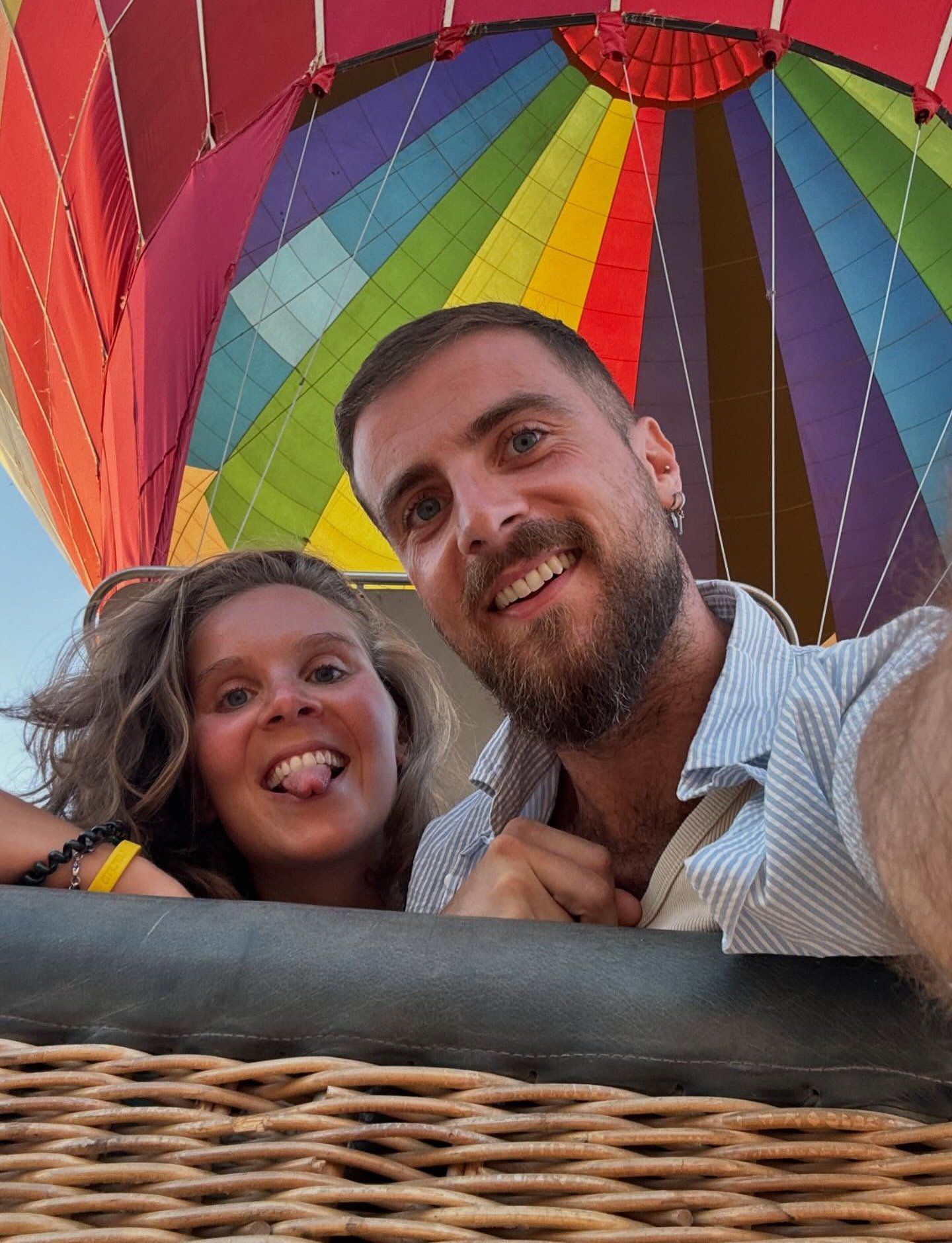 سيلفي مبهج لسائح وسائحة على متن البالون الطائر