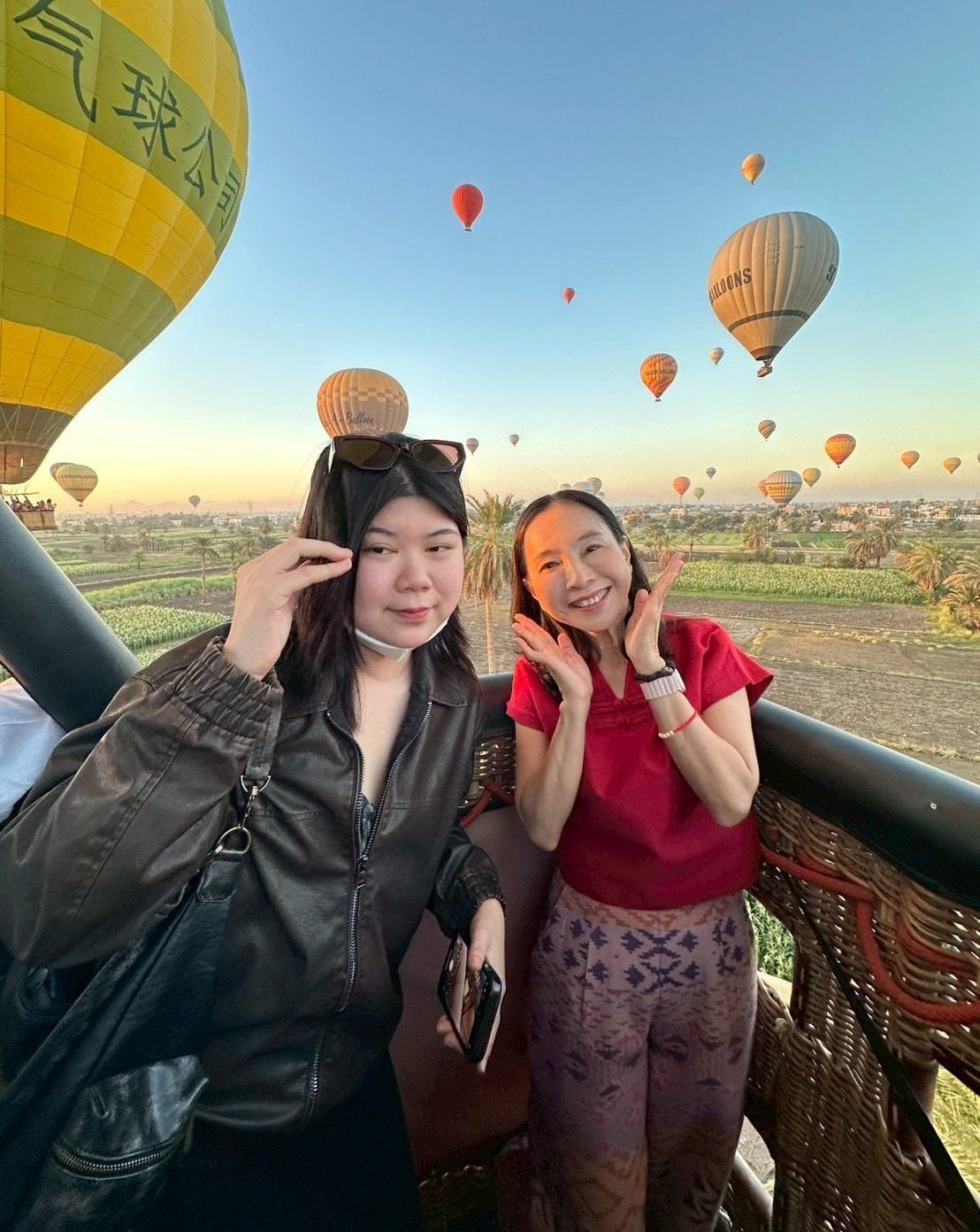 سعادة الأجانب خلال تحليق رحلات البالون الطائر بالأقصر