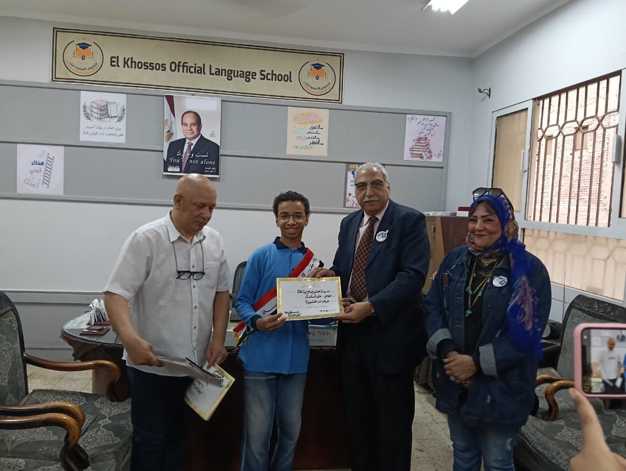الخميس، 23 أكتوبر 2025 01:33 مكرم مصطفى عبده مدير مديرية التربية والتعليم بالقليوبية، النموذج الإيجابي الطالب على أسامة، لموهبته المتميزة، والطالب إسلام هاني لابتكاراته المتميزة بمدرسة الخصوص الرسمية للغات، وذلك تحت رعاية وزير التربية والتعليم والتعليم الفنى محمد عبد اللطيف، ومحافظ القليوبية المهندس أيمن عطية، وبحضور عزة فتحي مدير إدارة الخصوص التعليمية.