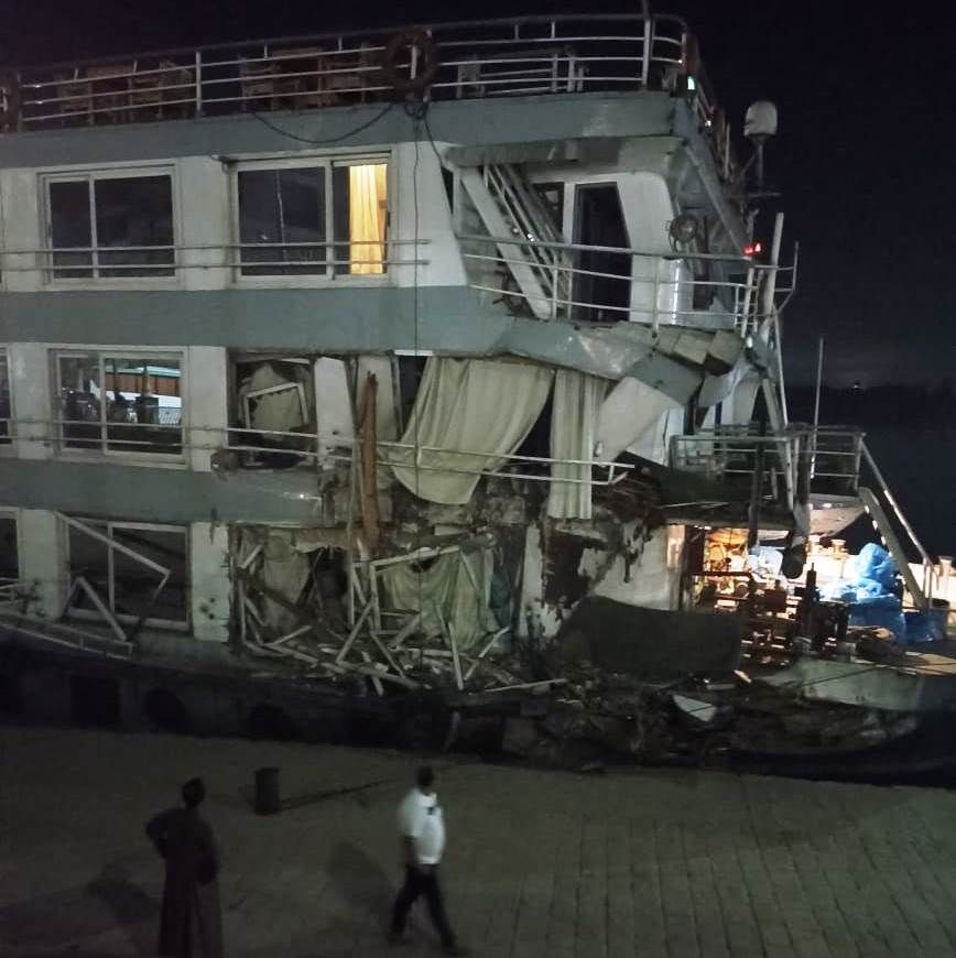 تفاصيل الحادثوقال ياسر جاد الرب، مدير عام السياحة بأسوان، إن الحادث وقع أثناء توجه الباخرة "نايل ماركيز" من مدينة أسوان إلى مدينة الأقصر، حيث اصطدمت بأحد أعمدة الكوبرى دون وقوع إصابات أو خسائر بشرية، بينما أسفر الحادث عن تحطم جزئى بمقدمة الباخرة.
